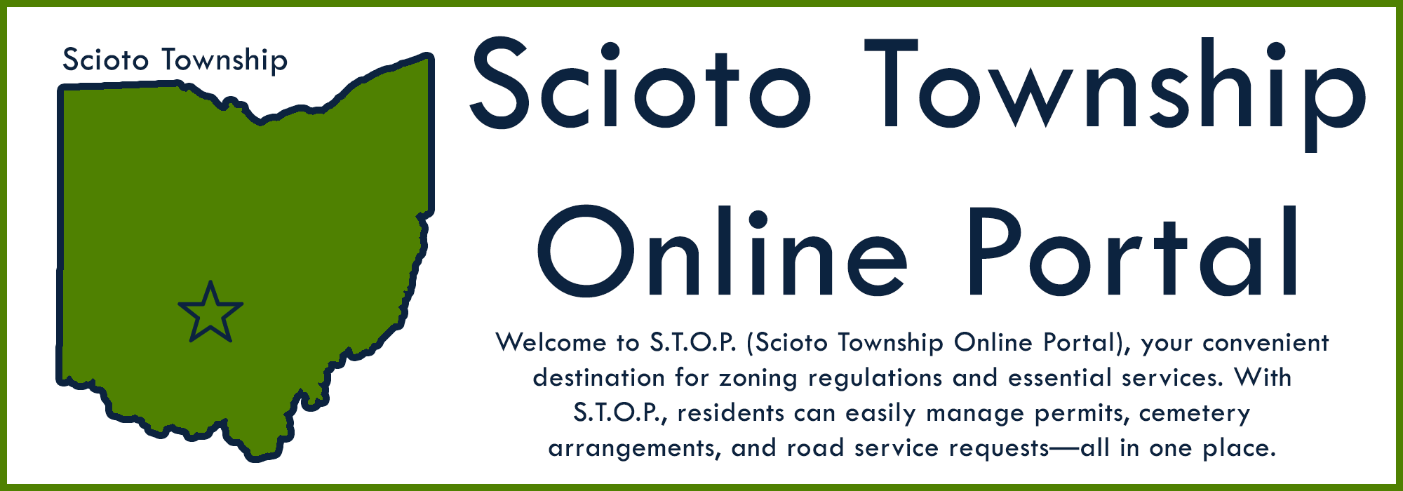 For zoning-related inquiries, please utilize the Scioto Township Online Portal (S.T.O.P.). You can find all the forms needed to apply for zoning permits, request services like road maintenance and cemetery information, or report concerns/complaints.